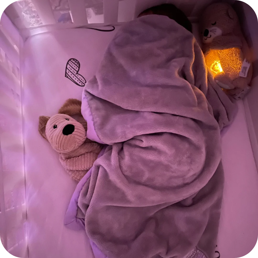 Its soothing breathing motion helps calm the mind and body, promoting deeper and more restful sleep for both kids and adults.