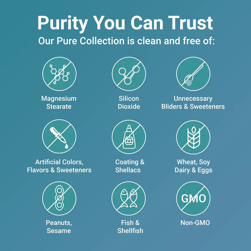 ✓ Free from common allergens: No GMOs, soy, gluten, dairy, additives, or preservatives.